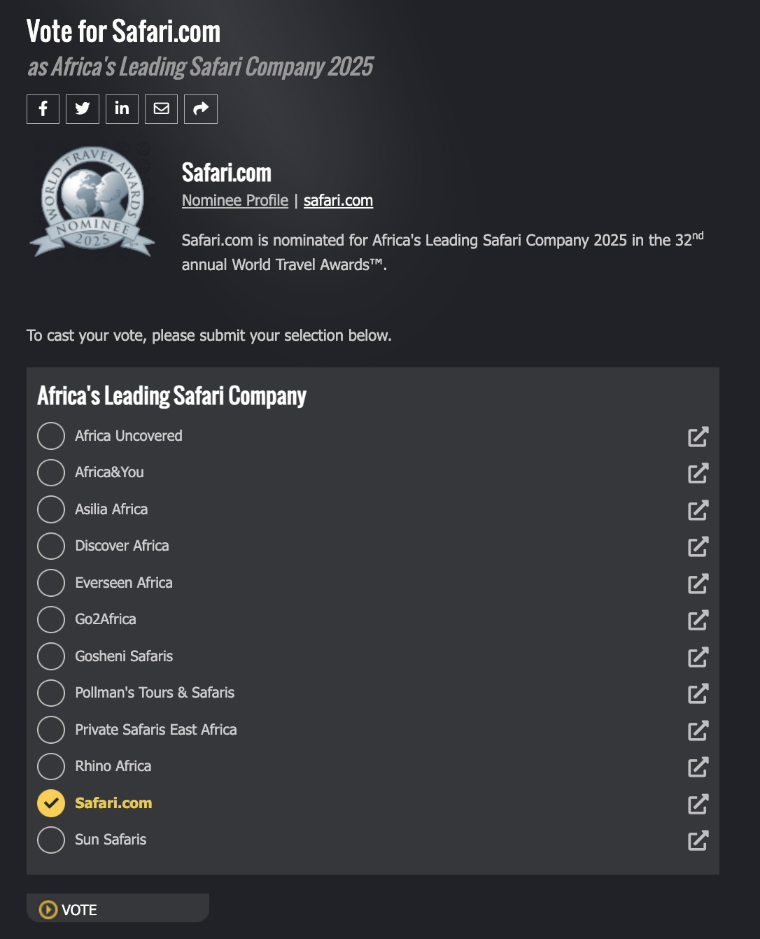 SAFARI.COM is honoured to have been nominated in two categories with the World Travel Awards for 2025.