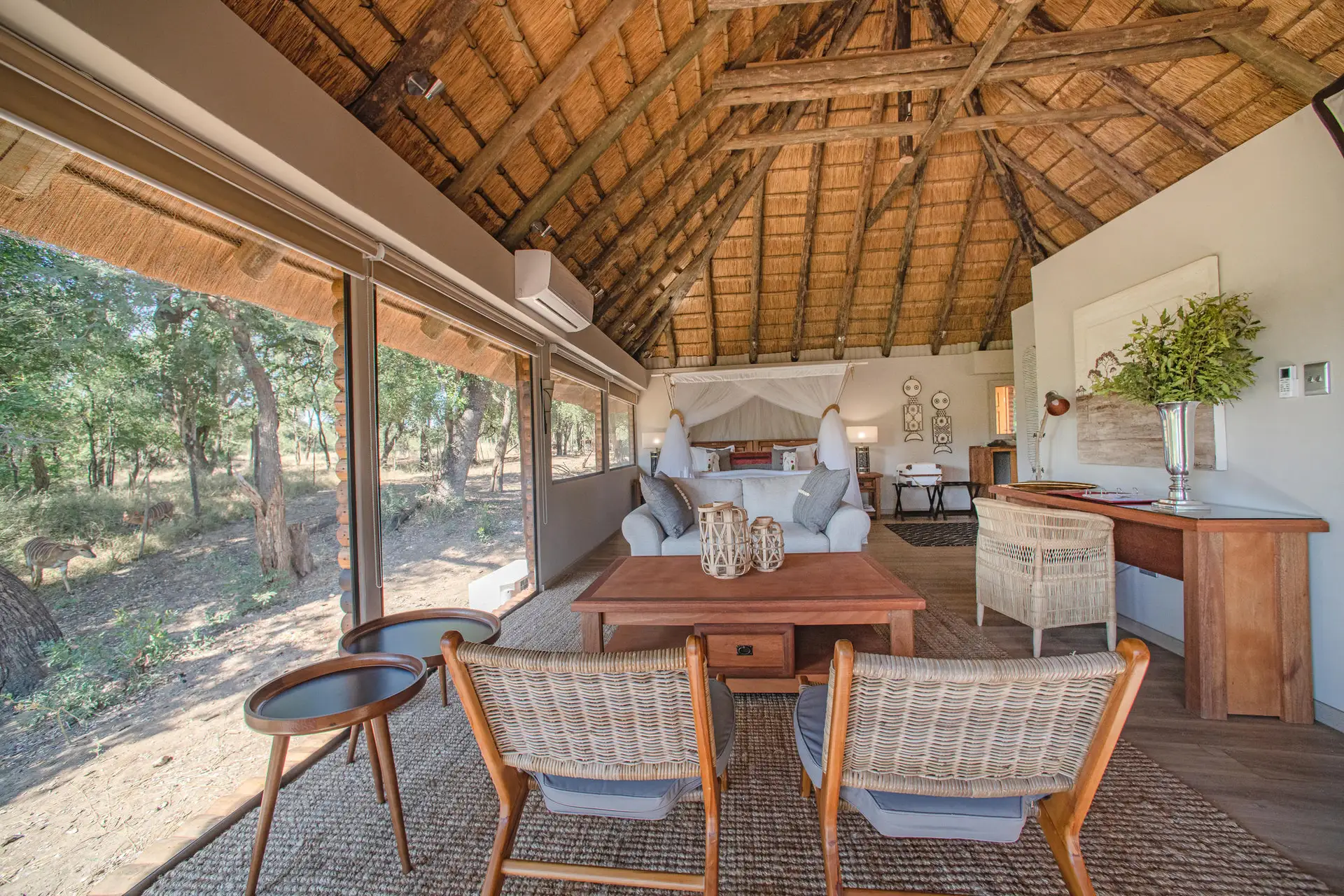 Kuname Lodge has only 5 suites, ensuring an exclusive and tranquil experience. Each suite includes a private deck overlooking the river or bush, with luxurious bathrooms featuring outdoor showers. Perfect for couples or those seeking a more intimate safari experience, Kuname offers personalized service and a serene environment. The lodge's proximity to the river provides excellent wildlife viewing from the comfort of your deck.