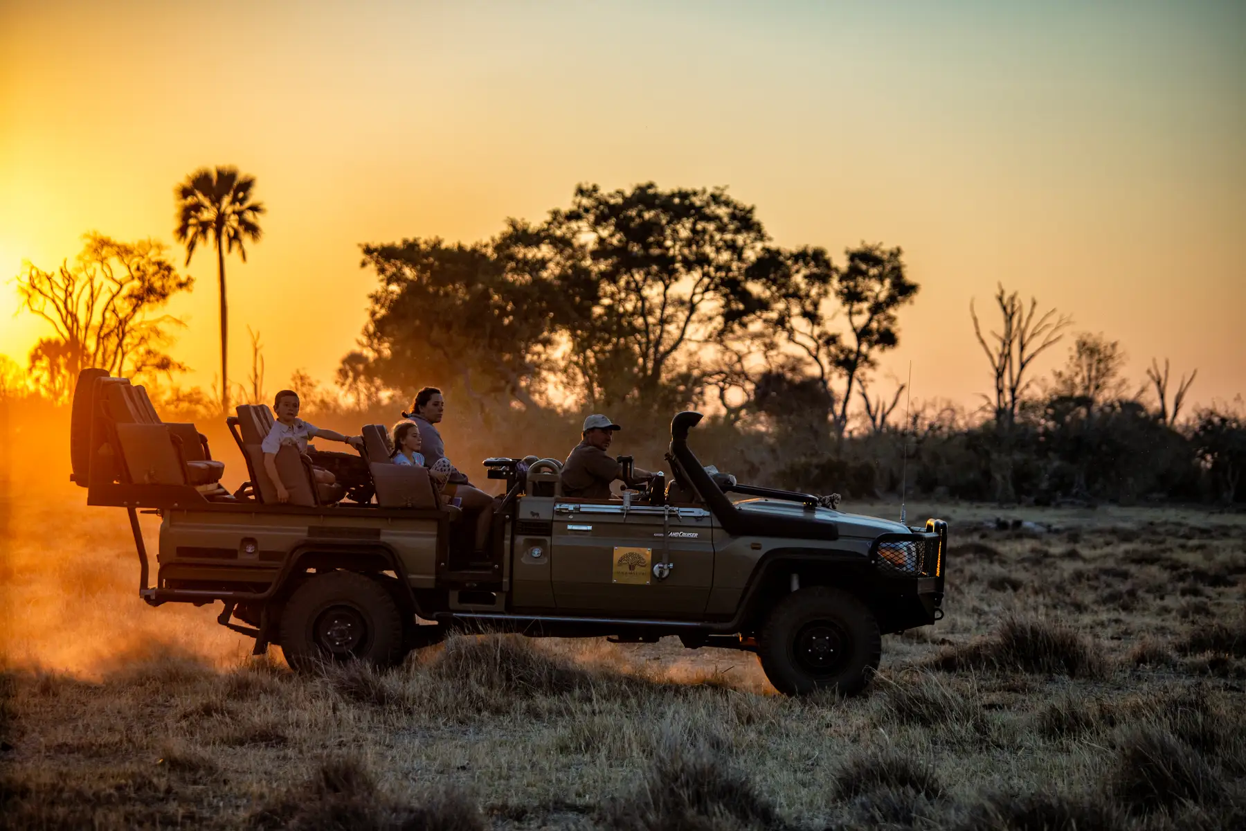 The surrounding concession is rich in wildlife, including rare wild dogs, and is renowned for dramatic lion–buffalo encounters. Here, you can enjoy off-road game drives, night drives, and seasonal boating safaris that explore the Delta’s hidden channels and islands.