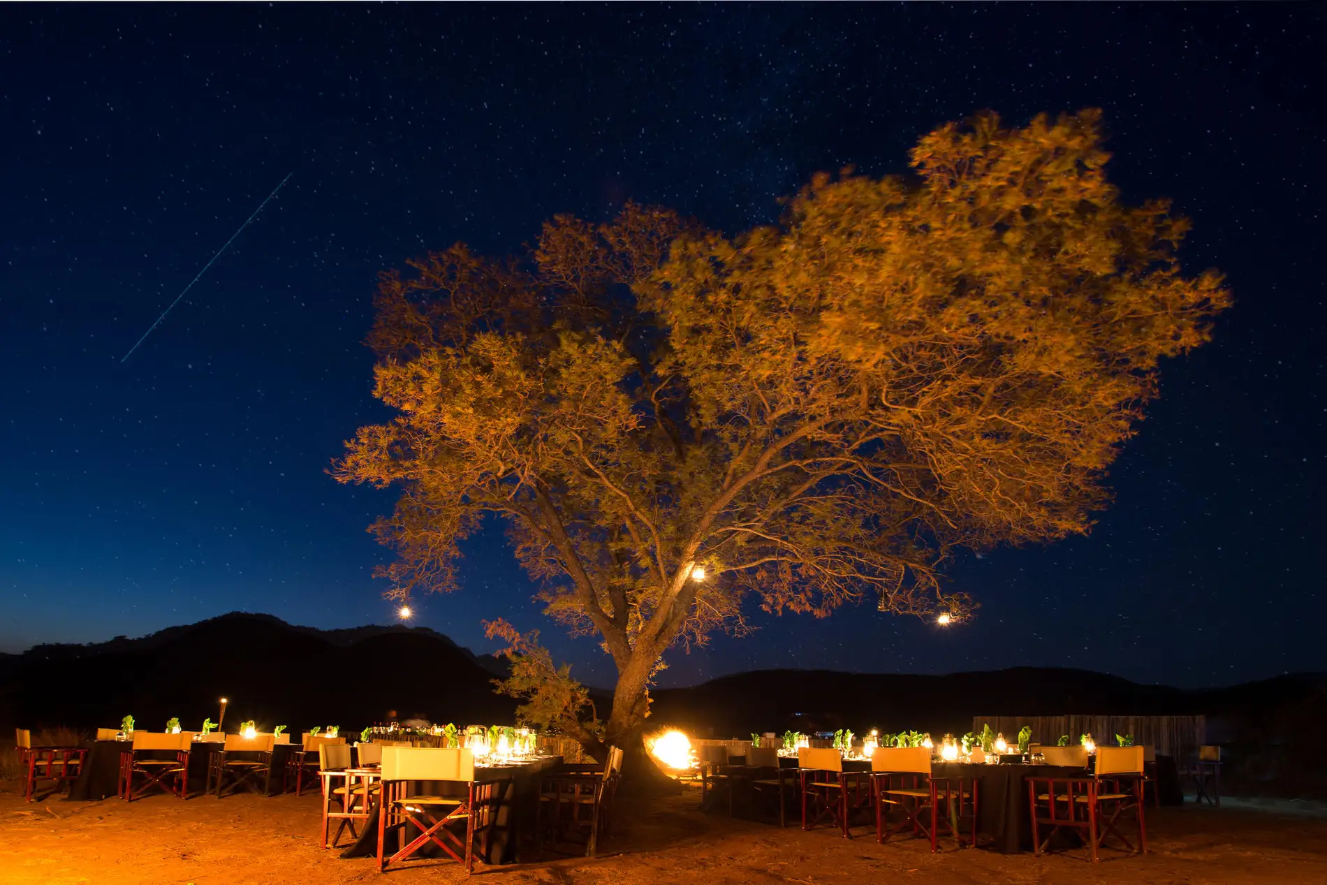 Guests at Shepherd’s Tree Game Lodge are invited to indulge in exquisite cuisine at the gourmet restaurant, or savor a unique dining experience under the stars at the boma, surrounded by the serene beauty of the bushveld.