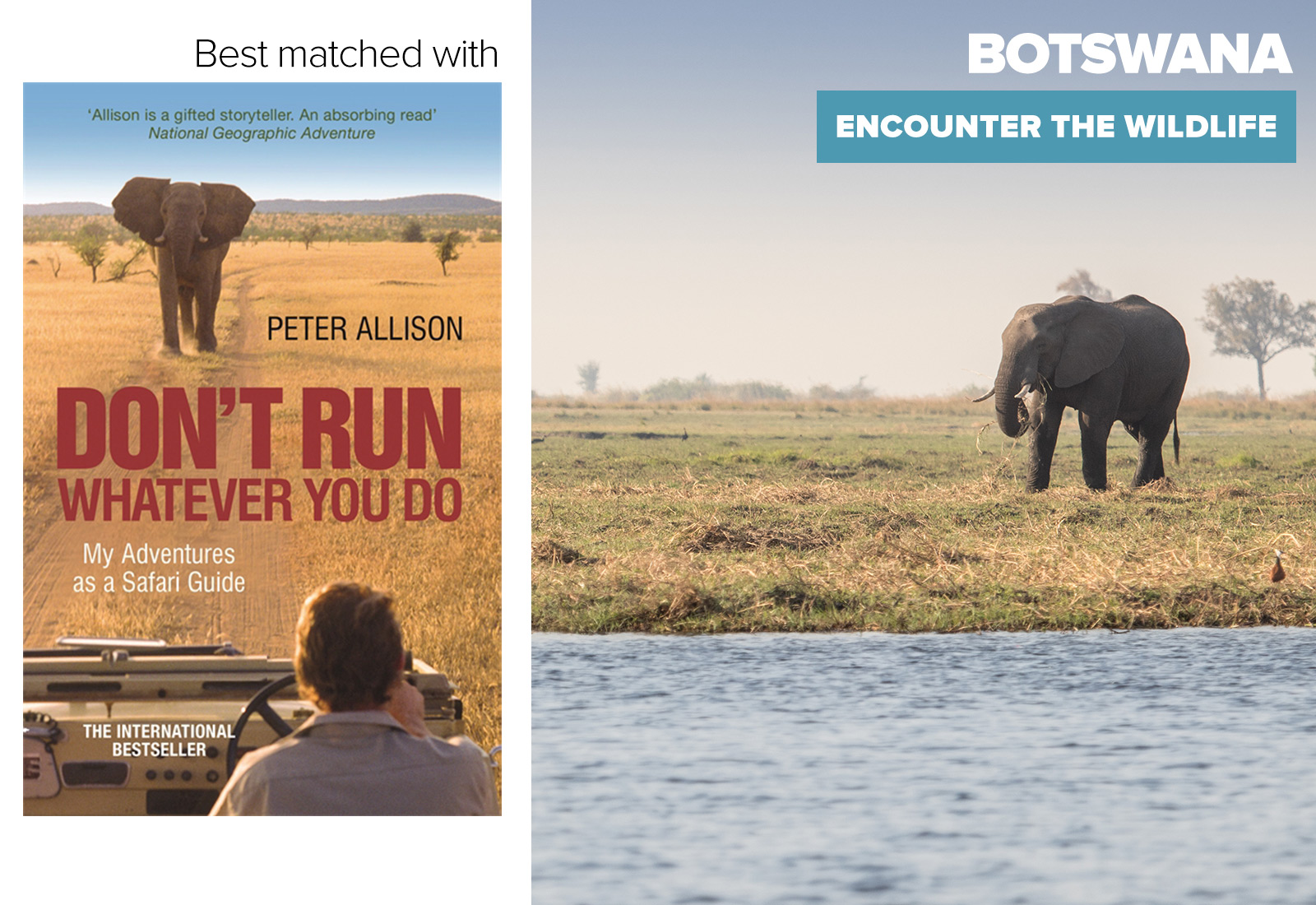 “For me, my must have read on safari for leisure is: “Whatever You Do, Don’t Run – True Tales of a Botswana Safari Guide” by Peter Allison. It’s a wonderfully written original account of a great guides misadventures in the wilds of Botswana.